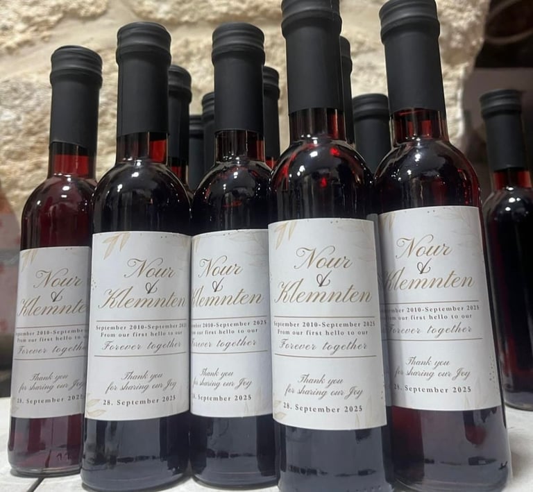 Custom labels for weddings, baptisms, anniversaries, and special gatherings.